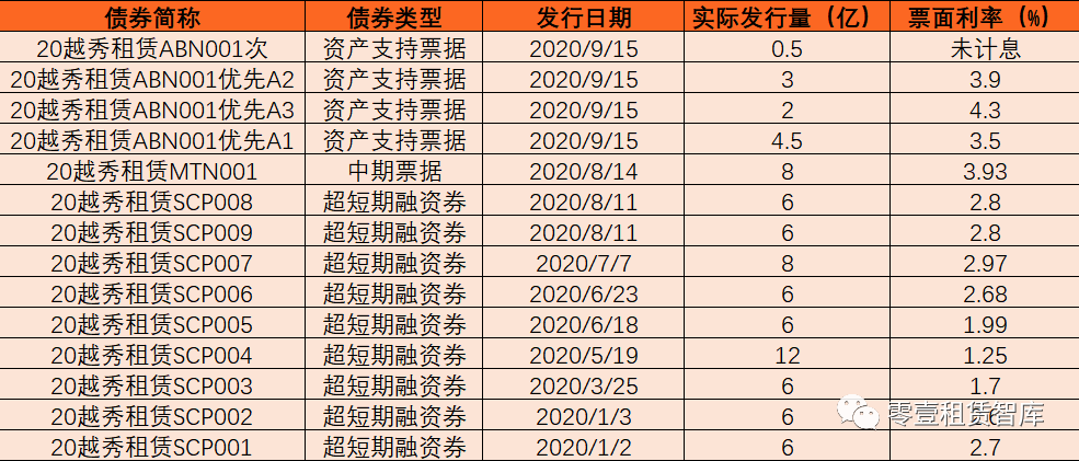 越秀租賃債券發(fā)行統(tǒng)計