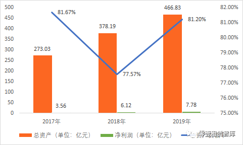 2017-2019年越秀租賃資產負債及凈利潤情況