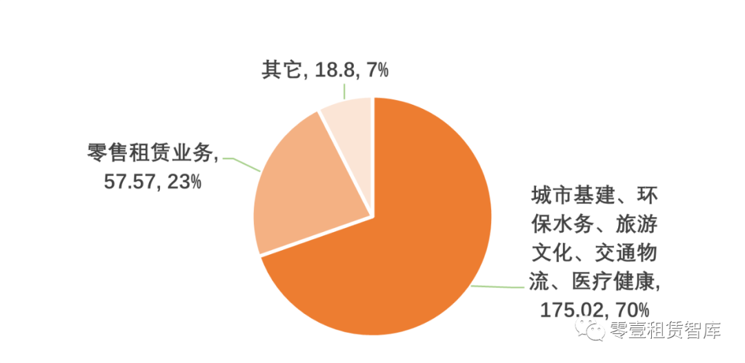 2020年越秀租賃全年實現(xiàn)投放251.39億元,其中“一大四專”業(yè)務(wù),即城市基建及環(huán)保水務(wù)、旅游文化、交通物流、醫(yī)療健康全年投放175.02億元,占投放總額的69.62%。