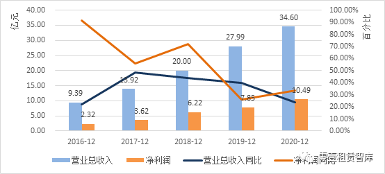 2020年,越秀租賃實現(xiàn)營業(yè)收入34.6億元,同比增長23.59%,實現(xiàn)凈利潤10.49億元,同比增長33.7%。截至2020年末,越秀租賃總資產(chǎn)520.06億元,同比增長11.4%。