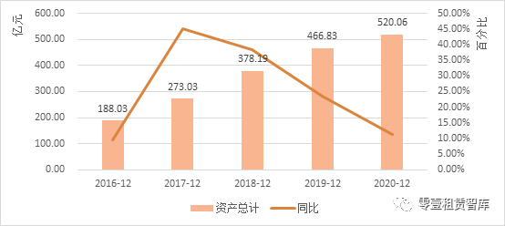 隨著資產(chǎn)總量的增加,越秀租賃的總資產(chǎn)增長速度放緩, 2018至2020年末的總資產(chǎn)同比增量分別為105.16億元、88.64億元和53.23億元,同比增速分別為38.52%、23.44%和11.4%。