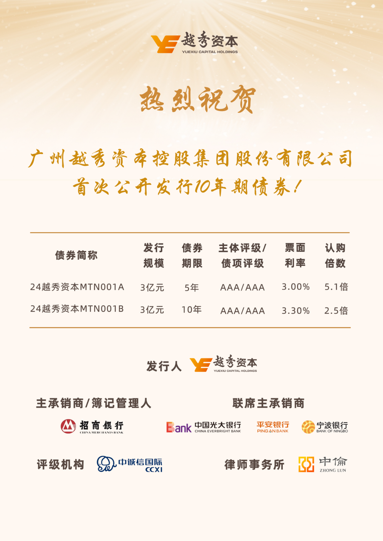 熱烈祝賀越秀資本首次公開發(fā)行10年期債券!